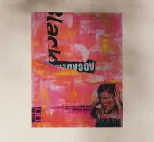 Tecnica mista con pittura acrilica, pasta strutturata, elementi di collage da manifesti e riviste.