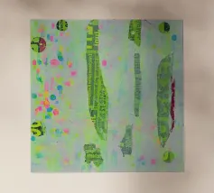Tecnica mista con pittura acrilica, pasta strutturata, elementi di collage da manifesti e riviste.