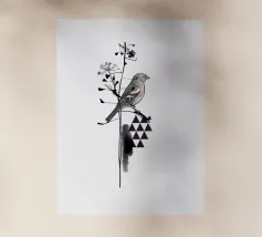Quando in autunno sbocciano gli ultimi fiori, la rosa canina risplende e l'erba si affievolisce, gli uccelli si dirigono verso sud. Decorate la vostra stanza con questa illustrazione minimalista del nostro mondo naturale e del fascino moderno.