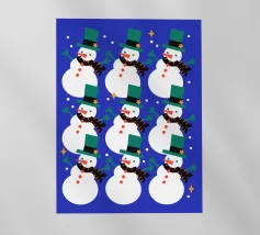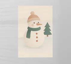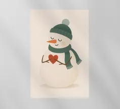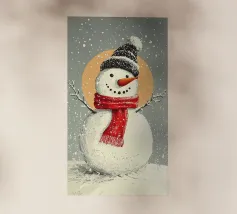 Il pupazzo di neve, completo di sorriso amichevole, naso a carota e braccia a ramoscello, aggiunge un tocco di allegria a una serena atmosfera invernale, perfetta per le decorazioni stagionali.