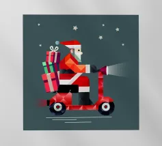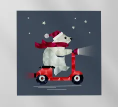 Un panda stilizzato su un monopattino colorato, raffigurato in stile geometrico. Questo design allegro combina il fascino moderno con la creatività giocosa e porta gioia a qualsiasi progetto.Panda moderno su un monopattino colorato
