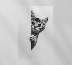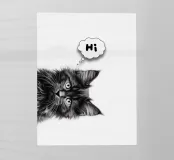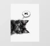 Un simpatico gattino dice "Ciao" in un'illustrazione minimalista, perfetta per gli amanti degli animali. Il suo ritratto in bianco e nero donerà gioia e fascino a qualsiasi parete artistica.