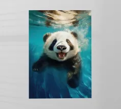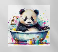 Un simpatico panda si gode la pioggia in piedi in una pozzanghera pellicola backlit