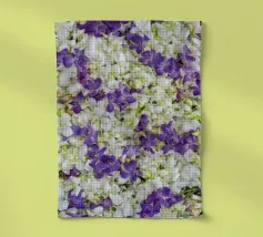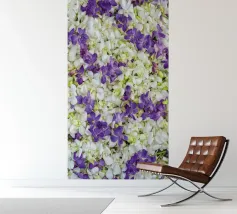 Trasformate il vostro spazio con la serena eleganza di un letto di orchidee bianche e viola. Questa splendida composizione floreale offre: