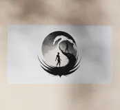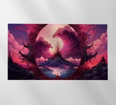 L'opera illustra un viaggio mistico con due figure che navigano su un sentiero tortuoso. Un drago emerge da una forma circolare, simbolo di trasformazione e avventura.