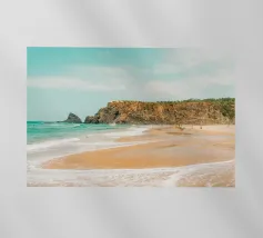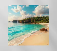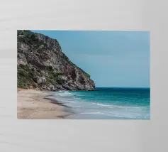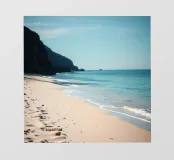 Una spiaggia tranquilla si estende lungo la costa, con dolci onde che si infrangono sotto un cielo azzurro e limpido. La sabbia soffice e incontaminata invita i visitatori a rilassarsi e a godersi la natura.