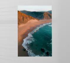 Una costa serena con onde morbide che si infrangono su un paesaggio incontaminato. pellicola backlit