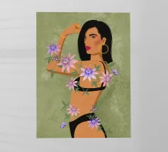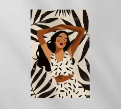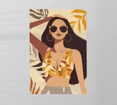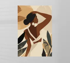 Questo poster espressivo combina la sensualità tropicale stilizzata con la raffinatezza grafica. Con potenti tonalità beige boho e contrasti netti, ricorda l'estetica dell'Art Déco e le illustrazioni iconiche della moda. La posa sicura e i dettagli floreali aggiungono fascino e forza al motivo: una dichiarazione femminile esotica ed elegante. Ideale per ambienti moderni e per chi ha un senso di stile e di vagabondaggio: una volta nei mari del sud, non si torna più indietro.