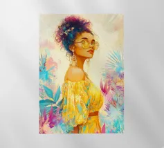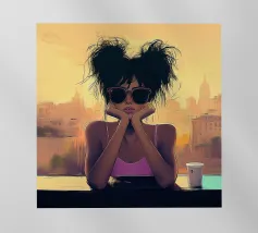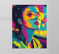 Descrizione breve: Immergetevi nel bagliore elettrico di un tramonto cittadino con questo ritratto vibrante ed elegante. Una donna chic con gli occhiali da sole si immerge nell'ultima luce del giorno, catturata in una splendida tavolozza di arancione infuocato e verde acqua. Con le sue texture pittoriche e un'atmosfera moderna e pop-art, quest'opera d'arte è perfetta per aggiungere un tocco di audace e atmosferico a un salotto, a un ufficio o a qualsiasi altro spazio contemporaneo.