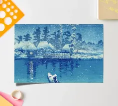 Ushibori di Kawase Hasui cattura il fascino tranquillo di un villaggio sull'acqua, con le barche che riposano lungo le rive tranquille e la luce soffusa che si riflette sull'acqua. I colori delicati e le ombreggiature suggestive di Hasui creano una scena pacifica e contemplativa che mette in risalto la bellezza della vita quotidiana nel Giappone rurale. Ideale per gli amanti delle stampe giapponesi, dei paesaggi shin-hanga e delle tranquille ambientazioni costiere, quest'opera d'arte conferisce serenità, profondità culturale ed eleganza senza tempo a qualsiasi interno.