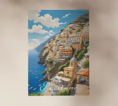 Vista su Positano. Positano nella splendida Costiera Amalfitana. Fotografia di strada e architettura in Italia. Fotografia in bianco e nero.