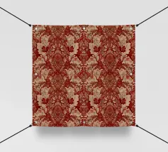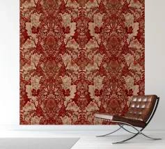 Questo lussuoso disegno cattura l'opulenza della carta da parati damascata tradizionale con il suo ricco sfondo rosso e gli elaborati motivi ornamentali beige. Perfetto per gli amanti dell'eleganza vintage, per i fan dell'estetica vittoriana, per gli appassionati di barocco e per tutti coloro che apprezzano la raffinatezza senza tempo dei motivi damascati classici e la grandezza storica.