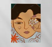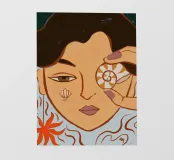 Una donna tiene una conchiglia in un occhio, con lo sguardo seminascosto, come se scrutasse le correnti segrete dell'oceano. L'opera รจ una lettera d'amore all'intuizione, al mistero e all'antico linguaggio del mare, che cattura il delicato dialogo tra anima e acqua.