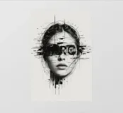Volto di donna con linee astratte e sovrapposizione di errori pellicola backlit