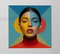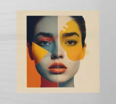 Volto di donna con sovrapposizione di forme geometriche Make up pellicola backlit