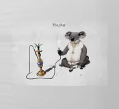 Comica illustrazione di un koala che si gode gli effetti della sua solita pianta di eucalipto. In modo meno tradizionale.