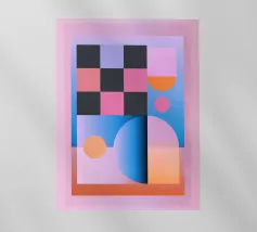 Questo moderno poster in stile Bauhaus combina forme geometriche chiare con un vibrante gradiente di colori dal rosa intenso al viola profondo. La scritta "What do you think?" in caratteri chiari e neri invita a riflettere. Perfetto per spazi creativi, soggiorni eleganti o uffici minimalisti.