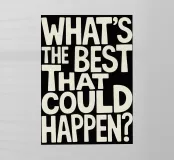 Design tipografico con la scritta "WHAT'S THE BEST THAT COULD HAPPEN?" in lettere maiuscole grandi e decise color crema su sfondo nero. Impilate verticalmente e leggermente sfalsate, le lettere creano una dichiarazione moderna, accattivante e potente.