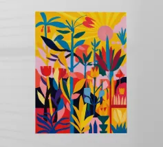 Questa opera d'arte presenta una zebra circondata da forme e motivi astratti. L'uso del nero, del bianco e del giallo crea un effetto visivo audace e sorprendente.