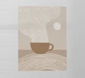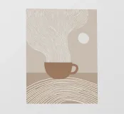 Eleganza purista nello stile del minimalismo contemporaneo: questa composizione meditativa combina la riduzione scandinava con il linguaggio del design boho di tendenza. La tavolozza monocromatica beige e le strutture lineari fluide creano un'atmosfera rilassante tra astrazione e oggettività. Le nuvole di vapore a forma di onda trasformano il piacere quotidiano del caffè in un'esperienza spirituale. Ricorda l'estetica zen giapponese e le moderne visualizzazioni architettoniche. Un'opera d'arte da parete perfetta per gli amanti dell'eleganza purista e della cultura della vita consapevole in ambienti dai colori chiari.