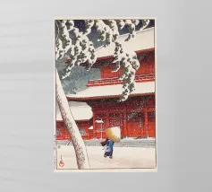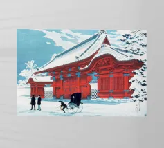 Zentsu-ji di Kawase Hasui offre una vista pacifica dello storico tempio Zentsu-ji, catturata con luci soffuse, ombre delicate e i dettagli atmosferici tipici di Hasui. La composizione mette in risalto la tranquilla bellezza del parco del tempio, fondendo l'architettura tradizionale con la calma della natura circostante per evocare un senso di riflessione e armonia. Ideale per gli amanti delle stampe giapponesi, dei paesaggi shin-hanga e delle tranquille scene spirituali, quest'opera d'arte conferisce eleganza, serenità e fascino culturale senza tempo a qualsiasi interno.