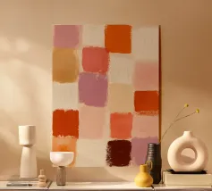 Strati astratti di arancione bruciato, cremisi e ocra donano calore ed emozione. Un pezzo forte che aggiunge profondità e personalità a qualsiasi ambiente.