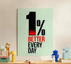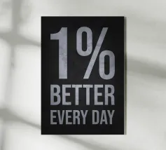 Arte da parete motivazionale per tutti i giorni: il poster minimalista "1% Better Every Day" vi ricorda di raggiungere grandi obiettivi con piccoli passi. Perfetto per l'ufficio, la palestra di casa o il soggiorno: un design pulito e un messaggio forte.