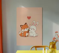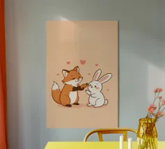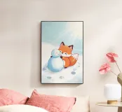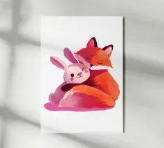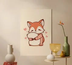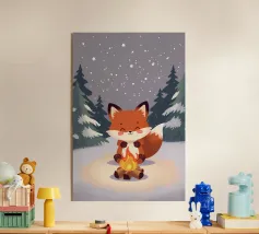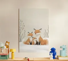 La volpe Voxy abbraccia dolcemente il suo piccolo amico di neve sotto il sole invernale. Colori tenui, impronte giocose e un'accogliente scena innevata rendono quest'opera d'arte perfetta per le camerette dei bambini, le nursery e gli amanti dell'arredamento invernale. Un'illustrazione che fa sciogliere il cuore, piena di amicizia e calore.