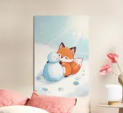 La volpe Voxy abbraccia dolcemente il suo piccolo amico di neve sotto il sole invernale. Colori tenui, impronte giocose e un'accogliente scena innevata rendono quest'opera d'arte perfetta per le camerette dei bambini, le nursery e gli amanti dell'arredamento invernale. Un'illustrazione che fa sciogliere il cuore, piena di amicizia e calore.