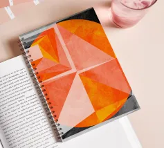 Forme geometriche astratte moderne con cerchio arancione dai colori vibranti che contrastano con le forme geometriche in bianco e nero. Un sorprendente disegno geometrico astratto con un cerchio arancione ed elementi triangolari dinamici. Questa moderna opera d'arte minimalista combina equilibrio e contrasto, creando una composizione audace ma armoniosa. Perfetto per gli interni contemporanei, per gli amanti del design e per chiunque sia attratto dalle forme geometriche pulite e dai toni caldi.