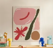Una composizione minimalista e astratta di forme organiche in una tavolozza morbida e terrosa. La disposizione suggerisce sottilmente un volto di profilo, creando un pezzo sereno e al tempo stesso stimolante.