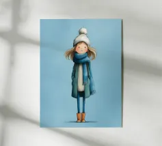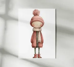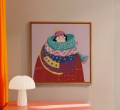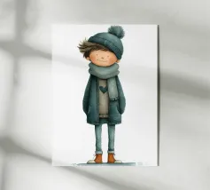Una commovente illustrazione di una persona infagottata in una sciarpa e in un cappello colorati e a fantasia, che si accoccola nei suoi strati accoglienti contro il freddo.