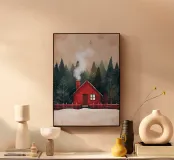 Accogliente cabina rossa in inverno