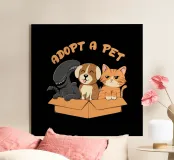 Una scatola piena di carineria... e una piccola sorpresa! Questo disegno mostra un cane felice, un gatto sorridente e uno xenomorfo inaspettatamente adorabile, tutti in attesa di essere "adottati". È un mix perfetto di dolcezza e sciocchezza, pensato per gli amanti degli animali, per gli appassionati di geek e per tutti coloro che amano un buon tocco di cultura pop.