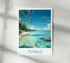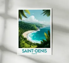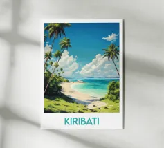 Poster decorativo che illustra una spiaggia paradisiaca della Guyana francese, con sabbia dorata, palme rigogliose e acque cristalline. Una perfetta evocazione della serenità tropicale, ideale per aggiungere un tocco esotico e rilassante alla vostra casa.