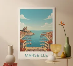 Poster di Malta che illustra i colori solari di La Valletta, con il suo mare turchese e la sua architettura storica. Perfetto per una decorazione murale che invita al viaggio e alla fuga nel Mediterraneo.
