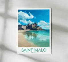 Poster di Malta che raffigura la soleggiata costa di La Valletta, tra acque cristalline e cieli azzurri. Un'illustrazione ideale per una decorazione murale ricca di fascino mediterraneo e di evasione.