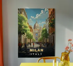Discover the majesty of the Vatican with this superb illustrated poster featuring St Peter's Basilica under a brilliant sky. The grandiose architecture, bathed in golden light, highlights the sumptuous details of this iconic site. Visitors stroll around the square, adding a touch of life to this timeless scene. A perfect poster for lovers of history, travel and religious architecture.