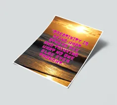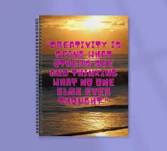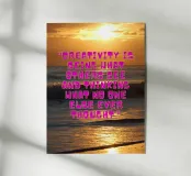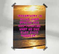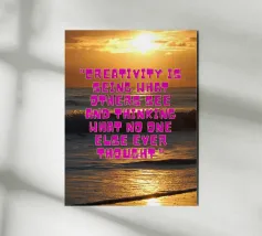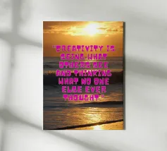 Questa vibrante immagine cattura l'essenza della creatività con una splendida alba sull'oceano. La citazione "La creatività è vedere ciò che gli altri vedono e pensare ciò che nessun altro ha mai pensato" ci ispira a pensare fuori dagli schemi e a trovare nuove prospettive.