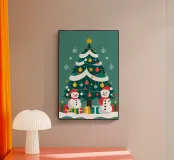 Albero di Natale con pupazzi di neve e regali plexiglass