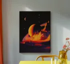 Alien Landscape è un'opera d'arte ipnotica che immerge gli spettatori in un'avventura ultraterrena. Il terreno incandescente di un pianeta alieno si estende in lontananza, riflettendo una surreale tonalità rossa. Saturno si staglia sul paesaggio con i suoi iconici anelli, creando un drammatico sfondo cosmico. Una figura solitaria e un'auto d'epoca aggiungono un senso di mistero ed esplorazione, accendendo l'immaginazione con le sue possibilità.