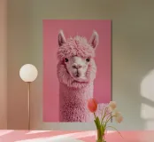Il dolce e simpatico alpaca in una tonalità di rosa ingannevole.