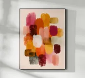 Strati astratti di arancione bruciato, cremisi e ocra donano calore ed emozione. Un pezzo forte che aggiunge profondità e personalità a qualsiasi ambiente.
