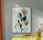Elegant in its restraint, this modern botanical watercolor features soft amber and inky blue stems rising in delicate harmony. The fluid brushwork and minimalist composition bring organic calm to contemporary interiors, ideal for curated gallery walls, spa-inspired spaces, or cozy reading nooks.