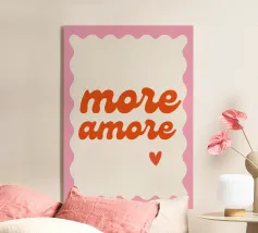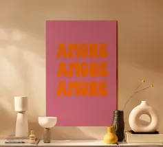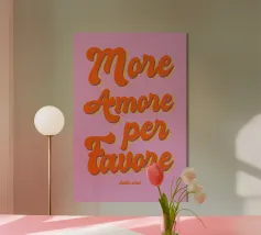 more amore per favore, Italia, amore, retrò, amore, vintage, pop art, amore, soggiorno, camera da letto, ufficio, cucina, tipografia, citazione, detto, rosa, giallo, arancio