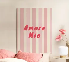 Questo elegante poster porta lo stile di vita italiano direttamente sulla vostra parete. La parola "amore" è scritta in caratteri morbidi color crema su uno sfondo a strisce verticali bianche e rosse dipinte a mano. Le linee organiche e il design giocoso conferiscono al poster un tocco artistico e moderno. Perfetto per la cucina, il soggiorno o qualsiasi altro luogo in cui si abbia bisogno di un po' di amore in più.