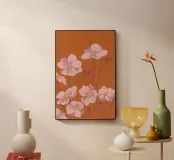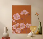 Illustrazione di anemoni, deliziosi fiori rosa su uno sfondo rosso pietra.
