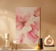 Un delicato pezzo floreale astratto con una forma centrale simile a un fiore in bianco e rosa tenue, con linee più scure simili a inchiostro che si irradiano verso l'esterno, come se svelassero l'anima di un fiore su uno sfondo tenue. Stile Melissa Herrington.