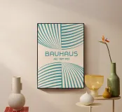 Un pezzo fresco e ipnotico! Questo poster astratto, in onore del movimento Bauhaus, utilizza ampie linee curve e motivi a strisce per creare un effetto ottico sorprendente e un potente senso di movimento fluido. Il disegno è reso in una tavolozza luminosa e tranquilla di Aqua Teal (o turchese chiaro) su uno sfondo bianco sporco. Questa tonalità rinfrescante esalta il flusso geometrico, rendendolo un punto focale perfetto per gli interni costieri, scandinavi o minimalisti che cercano un tocco di colore rilassante. Si tratta di un download digitale di qualità superiore, con una risoluzione ultraelevata di 7000x5000 pixel.