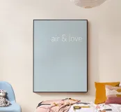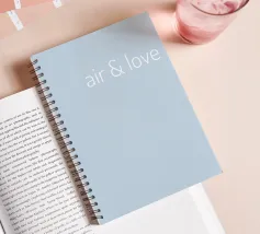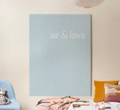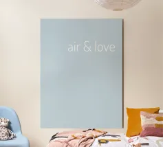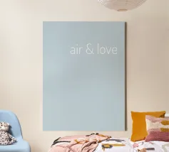 Air & love lettering in white on a light blue background. Optimism and lightness.